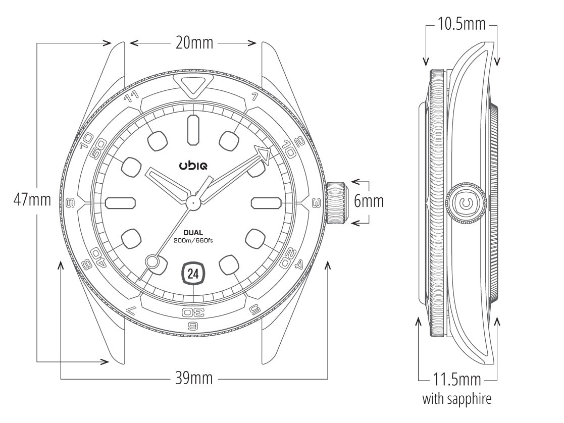 Every set of DUAL comes in a custom colored pouch on a brushed flat link quick-release bracelet and a colour-matched quick-release FKM rubber strap to match your day.