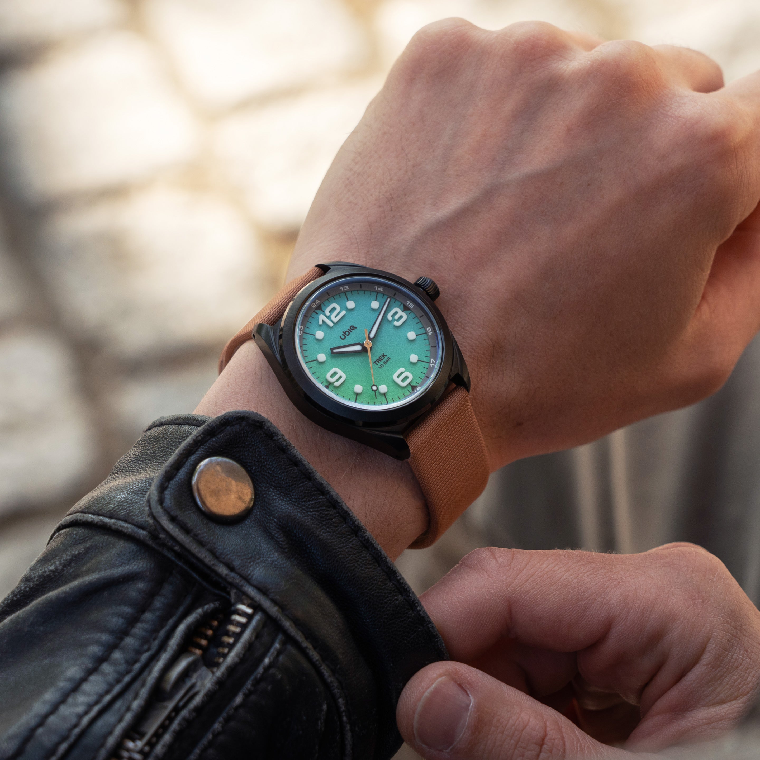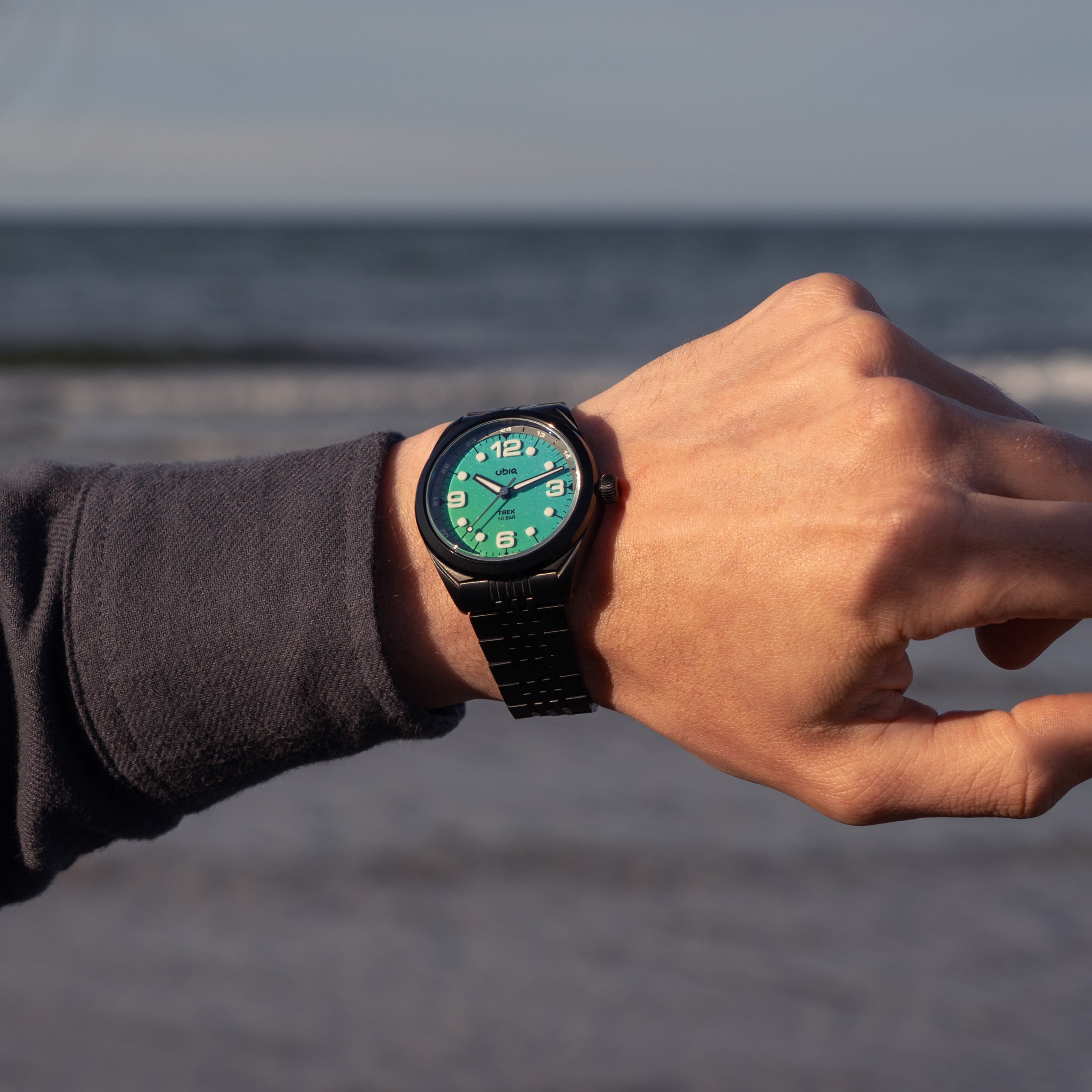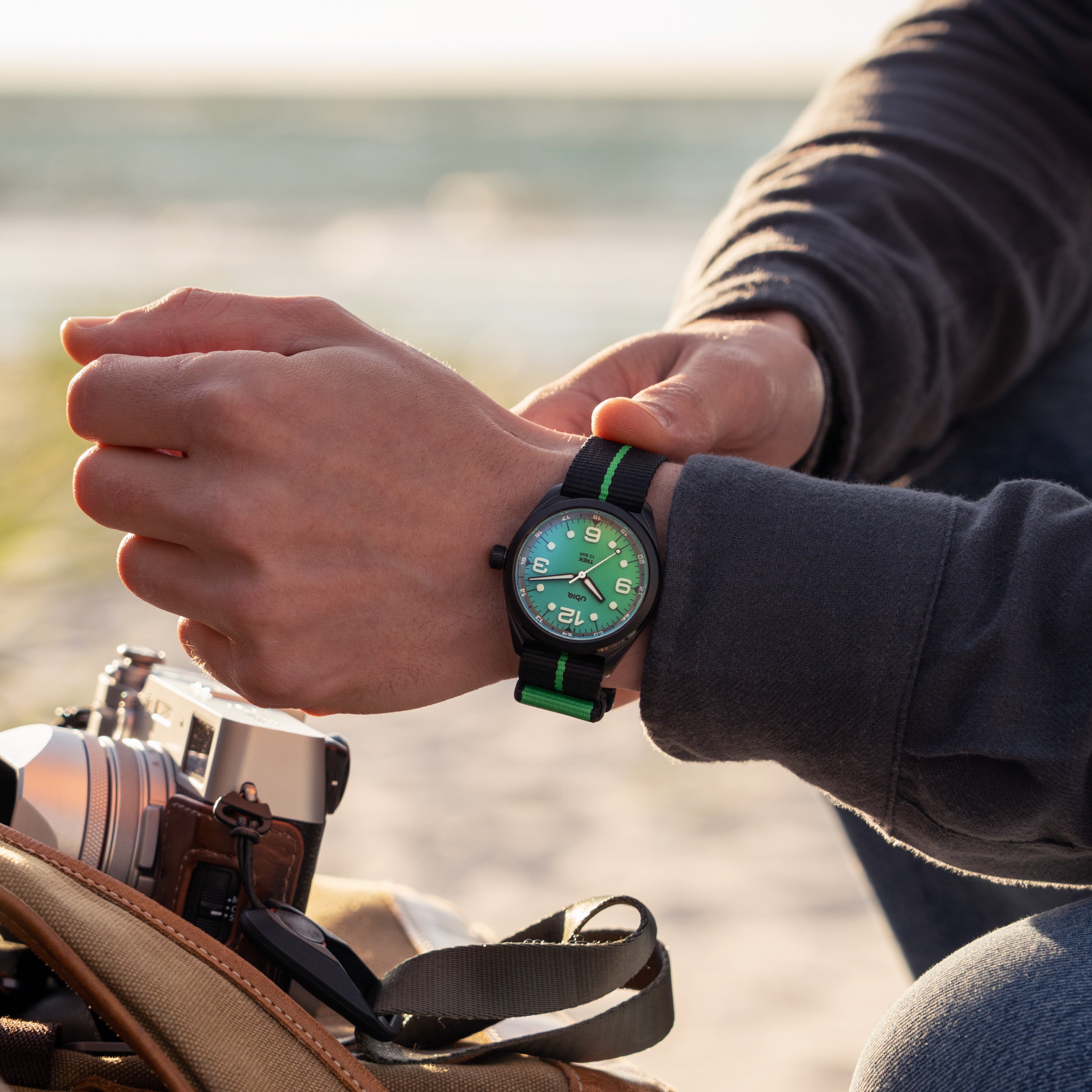 Bracelet/Strap: Marine recycled, quick-release strap and custom single pass nylon strap with 2x quick-release spring bars (optional hardened titanium, fully brushed flat multi-link bracelet with quick-release and on-the-fly micro-adjust)