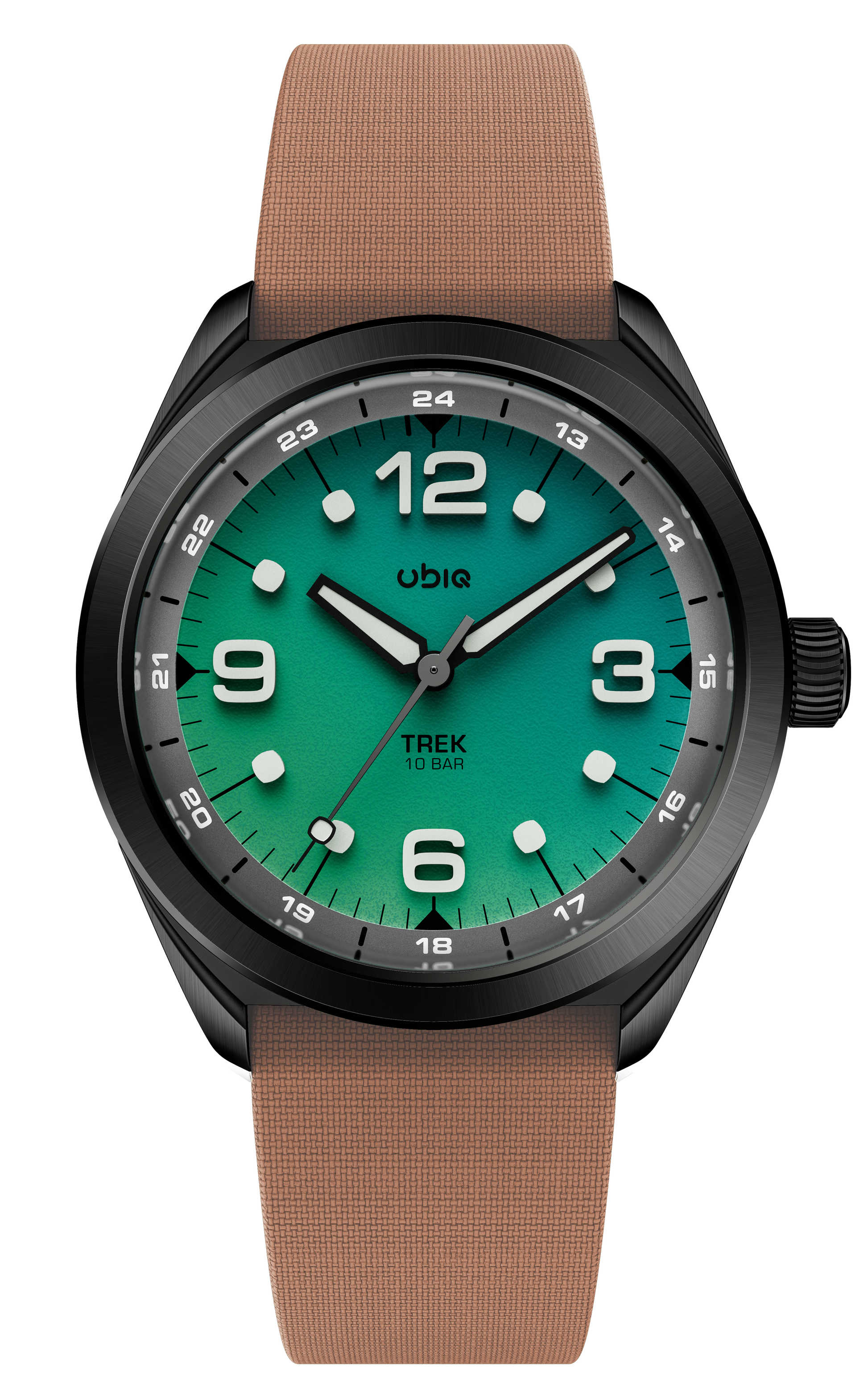 TREK CORALGLOW shines brightly in darkness with its full lume gradient dial, accented by subtle gray and deep black details for a striking presence.