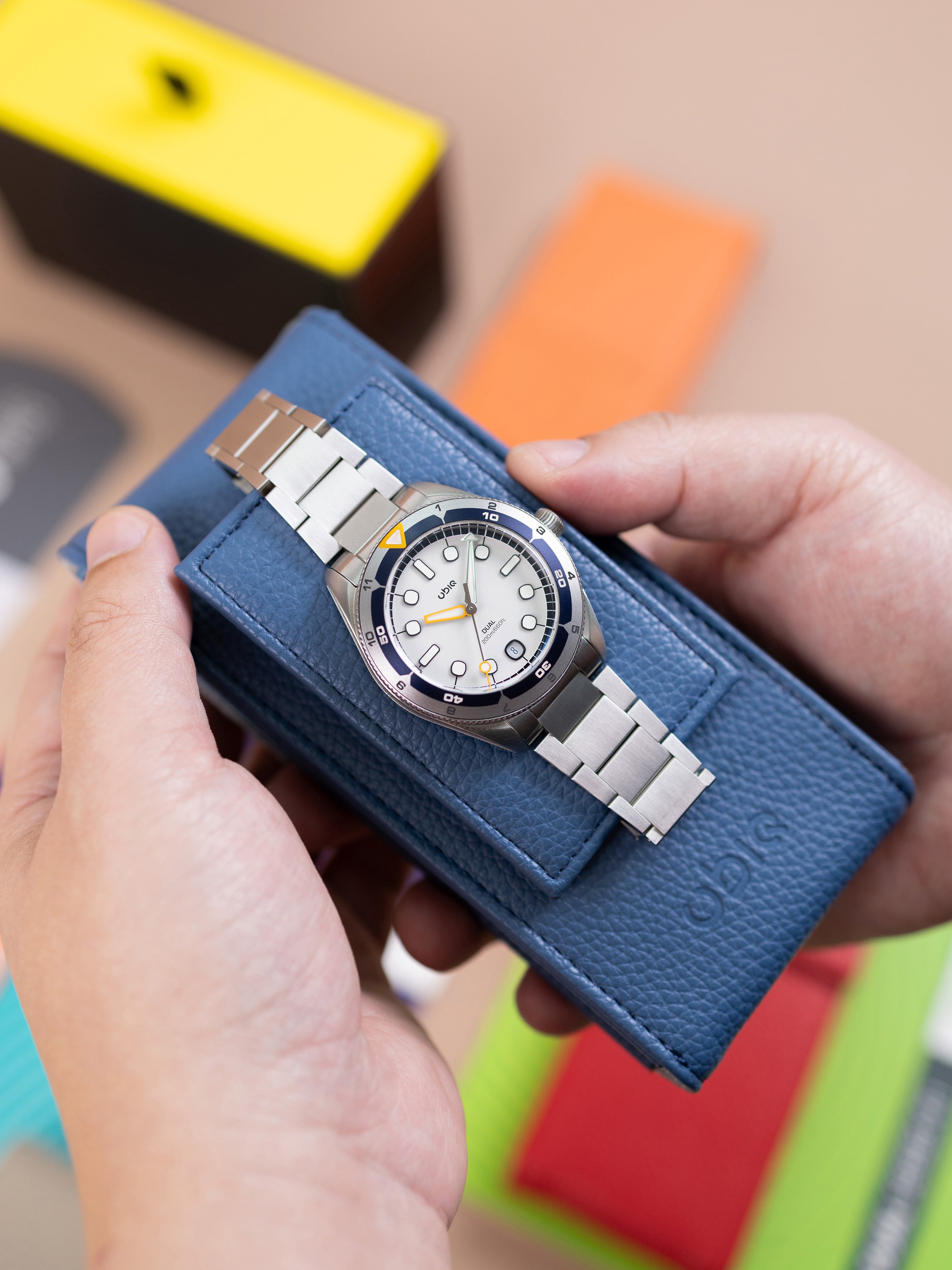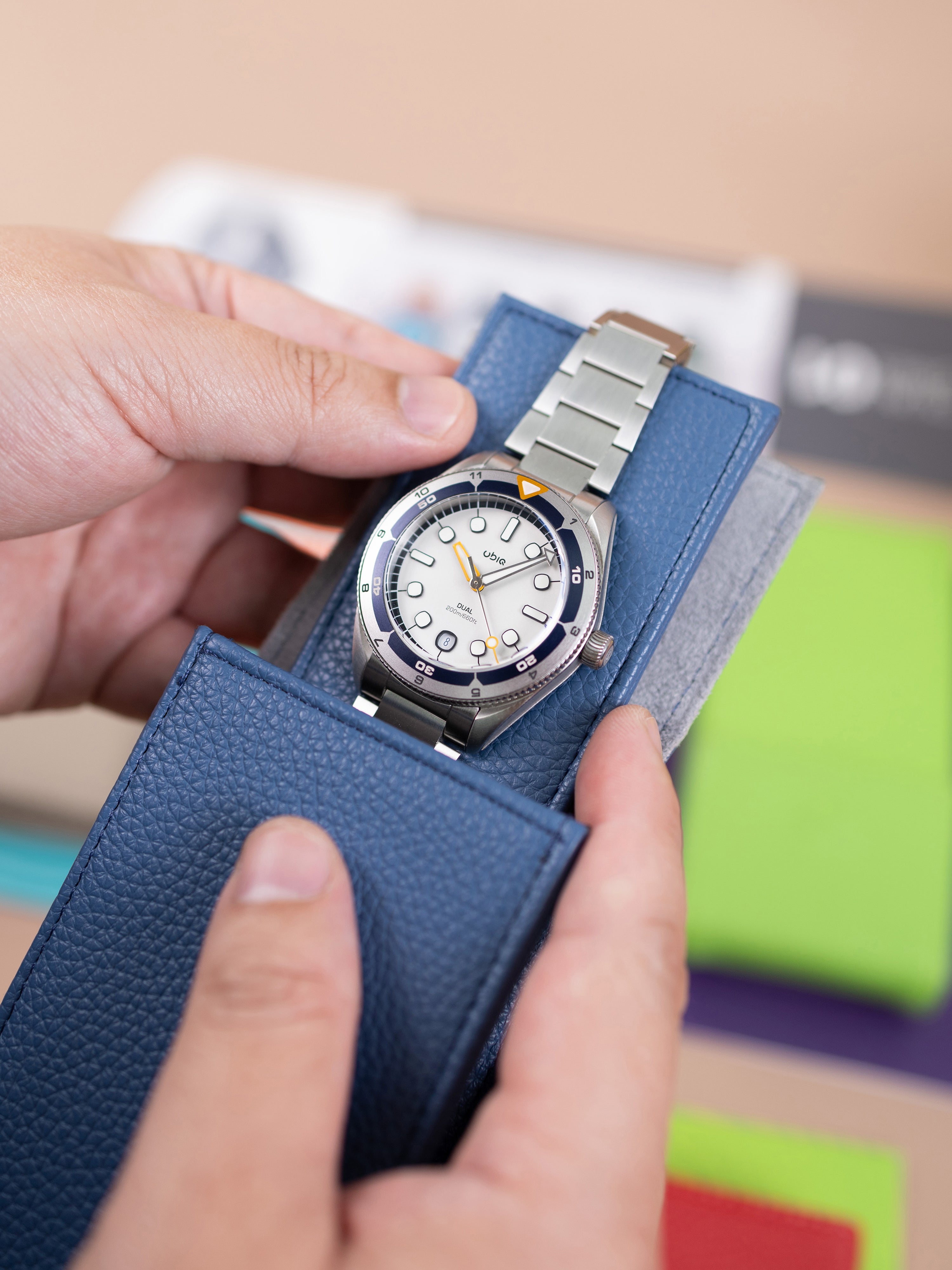 Watch Pouch - NAVY BLUE - Blue outer, grey inner with blue holder